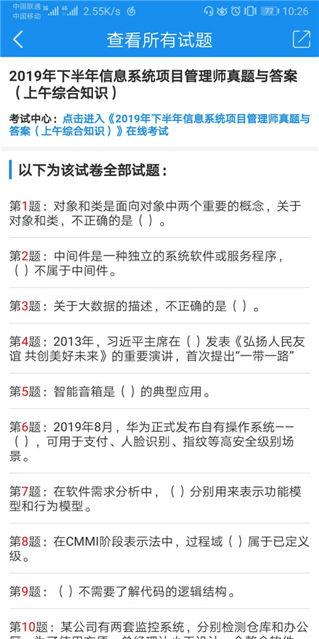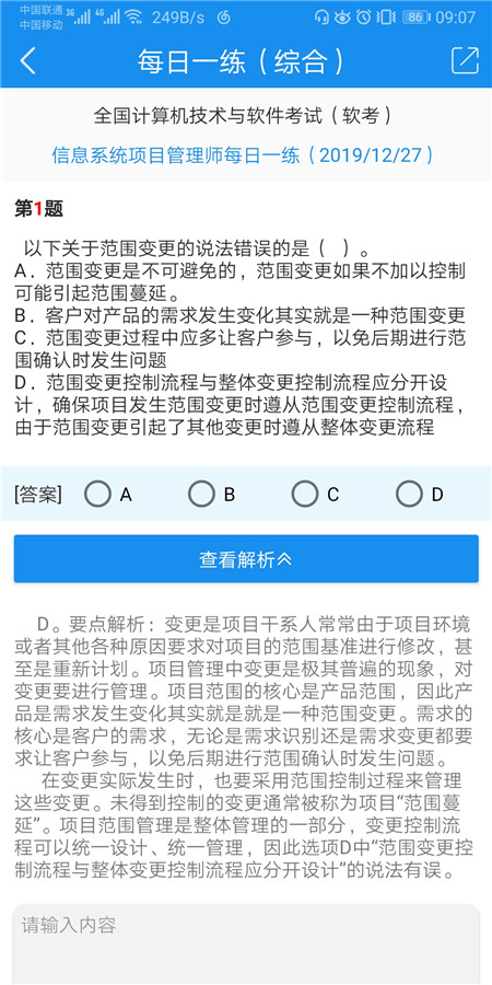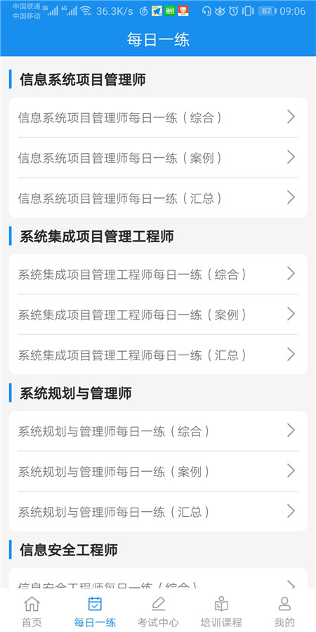 每日一练提供信息系统项目管理师、系统集成项目管理工程师、系统规划与管理师、信息安全工程师等四个考试的综合知识和案例分析。