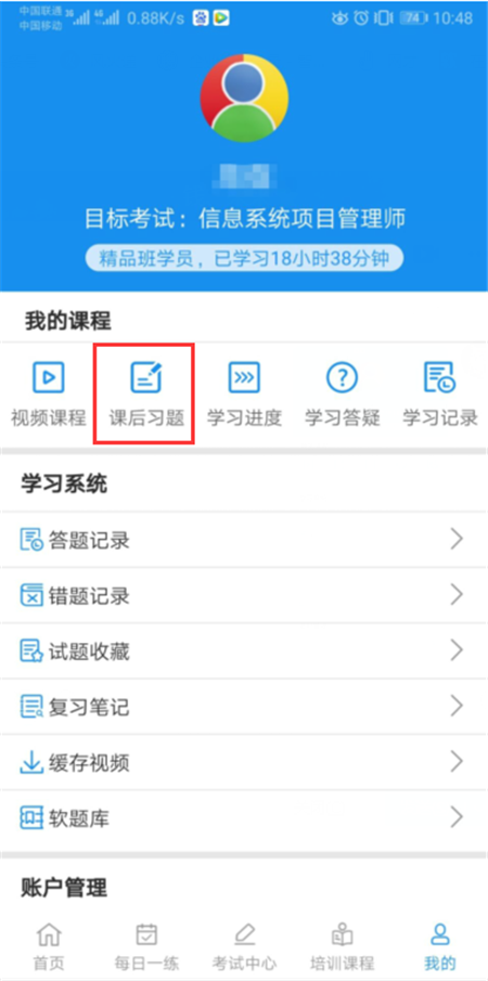 在课后习题中可以查看每一次直播课程后老师留的课后作业
