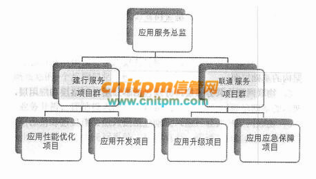 多客户项目群管理框架,指按客户目标管理,设置有 pmo或 it服务总监,管理多个客户项目,每个客户项目设有项目经理,每个客户都有不同的 it服务业务子项目。此题中应用服务总监管理建行和联通两个项目群。
