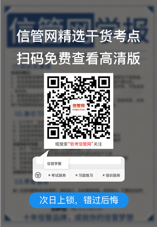 JRS直播学报由专注信管10年的JRS直播编辑整理,精挑细选信息系统项目管理师干货考点,包含知识点集锦和配套习题,只需扫码关注JRS直播微信公众号即可免费查看当日学报。