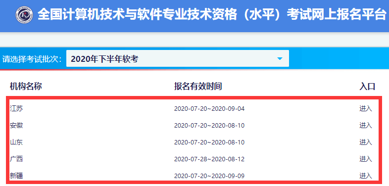 1、进入全国计算机技术与软件专业技术资格(水平)考试网上报名平台,并选择您所在省市进入。