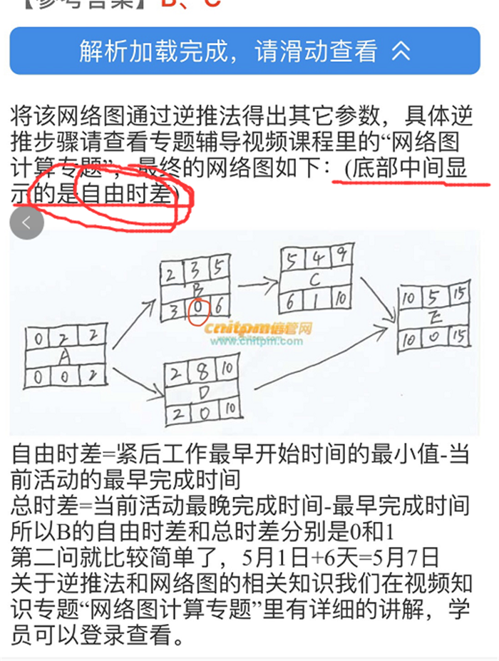 但是这题目解析这里写的是自由时差