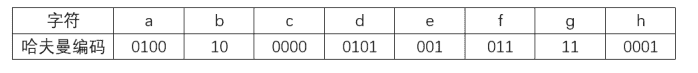已知字符集为{a,b,c,d,e,f,g,h},若各字符的哈夫曼编码如下表所,则对编码序列010101100011001001001111的译码结果为( )。 A.daceabdgB.dabccabgC.dfhbabfgD.dfaecbfg