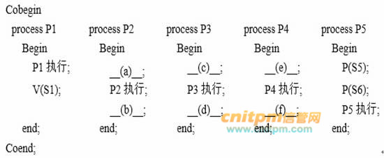 若用PV操作控制这5个进程的同步与互斥,程序如下: