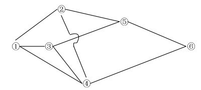 下图标出了某地区的运输网。各节点之间的运输能力如下表(单位:万吨/小时):从节点①到节点⑥的最大运输能力(流量)可以达到 ( ) 万吨/小时。A.26 B.23 C.22 D.21
