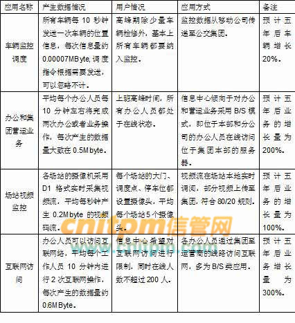 公交集团企业网络的应用主要包括四类,分别是车辆监控调度、办公和集团营运业务、场站视频监控和互联网访问。各类应用的当前需求调查情况如表1-1所示。