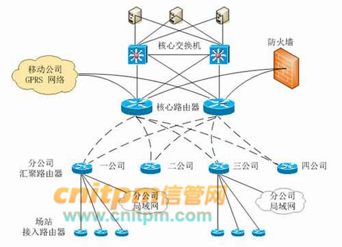设计人员通过需求分析,认为公交集团企业网络主要由三级局域网络互连而成,这三级局域网络分别为集团总部的核心局域网、分公司局域网、场站局域网。公交集团企业网络将通过路由设备连接这些局域网,以便于承载整个集团的各类应用。