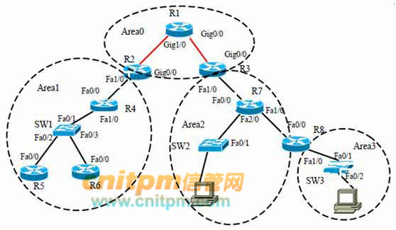 Area 0 ——10.0.0.0/13 OSPF协议要求所有的区域都连接到OSPF主干区域0,当一个区域和OSPF主干区域0的网络之间不存在物理连接或创建物理连接代价过高时,可以通过创建OSPF虚链路(virtual link)的方式完成断开区域和主干区域的互连。在该公司的网络中,区域3和区域0之间也需要通过虚拟链路方式进行连接,请给出路由器R3和路由器R8上的OSPF进程配置信息。为了保证各区域的地址连续性,便于实现路由汇总,各区域的地址范围如下: