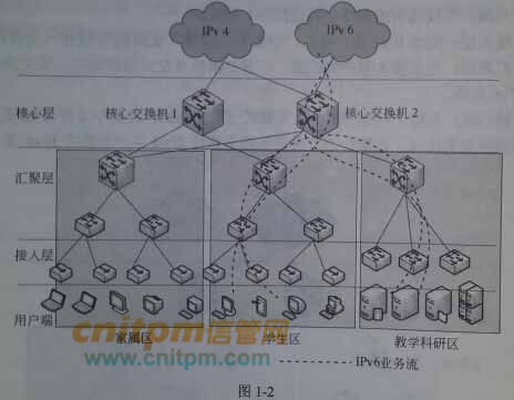 随着网络建设的不断升级,为把技困网积极推进到以 I阳Pv6 为核心的下一代互联网中,要求学生区和教学科研区的IPv6 用户能够访问IPV6网络资源,同时实现这两个区域之间lPv6 资源的互访。