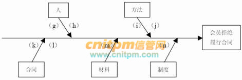 2. 项目组小赵从W公司客户代表处了解到现有系统中经常有会员拒绝履行订单,并将其作为问题记录了下来。老王指出了小赵并未发现系统真正的问题,并以会员拒绝履行订单为例,利用如图1-1所示的鱼骨图分析了系统中真正存在的问题。