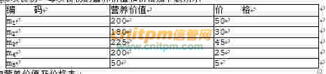 现有5项食物,每项食物的营养价值和价格如下表所示。