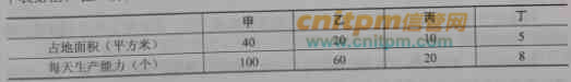 某公司新建一座200平米的厂房,现准备布置生产某产品的设备。该公司现空闲生产该产品的甲、乙、丙、丁四种型号的设备各3台,每种型号设备每天的生产能力由下表给出,在厂房大小限定的情况下,该厂房每天最多能生产该产品 ( ) 个。A.500 B.520 C.524 D.530
