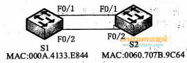 如图所示,交换机S1和S2均为默认配置,使用两条双绞线连接,( )接口的状态是阻塞状态。