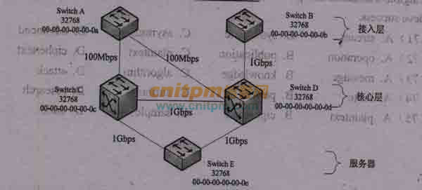 这时候B上的一台工作站,想要访问交换机E上的服务器的路径是(),由此看出,如果根桥的选举采用默认配置,下列说法错误的是()。