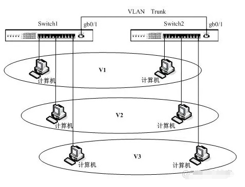 若交换机Switch1和Switch2没有千兆端口,在图4-1中能否实现VLAN Trunk的功能?若能,如何实现?