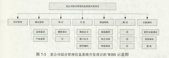 某公司综合管理信息系统开发项目的WBS分解结构图如图7-5所示。其中①、②、③、④空应该依次填入(39) - JRS直播