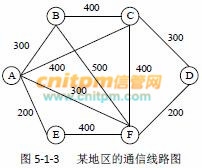 某地区的通信线路图如图5-1-3 所示,假设其中标注的数字代表通信线路的长度(单位为千米),现在要求至少要架设 () 长的线路,才能保持6 个城市的通信连通。 A、1300 B、1200 C、1500 D、1700
