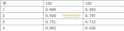 你项目的初始成本是$25,000,这将在以后四年内每年节省公司$6,000。根据以下表格数据,如果利率是12%,那么项目的净现值是多少?