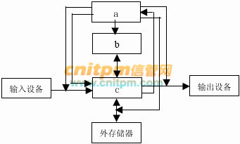 计算机各功能部件之间的合作关系如下图所示。假设图中虚线表示控制流,实线表示数据流,那么a、b和c分别表示 () 。A.控制器、内存储器和运算器 B.控制器、运算器和内存储器 C.内存储器、运算器和控制器 D.内存储器、控制器和运算器