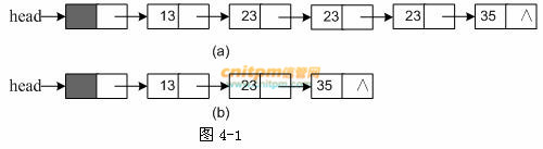 图4-1(a)、(b)是经函数compress()处理前后的链表结构示例图。