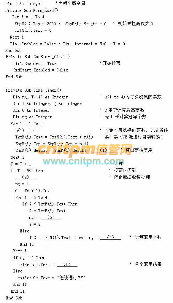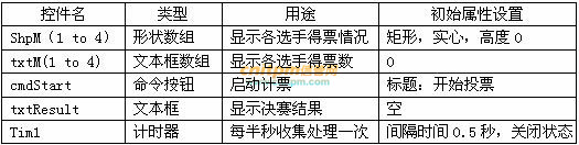 该程序中设置公共变量T动态记录投票时间。四个形状ShpM(1 to 4)动态增长的底线固定。