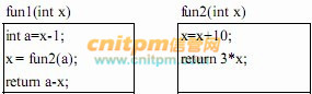 函数fun1()、fun2()的定义如下所示,已知调用fun1时传递给形参x的值是-5,若以引用调用(call by reference)的方式调用fun2,则函数fun1的返回值为(1);若以值调用(call by value)的方式调用fun2,则函数fun1的返回值为(2)。