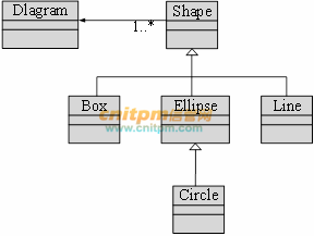已知对某几何图形绘制工具进行类建模的结果如图5.1所示,其中Shape为抽象类(应至少包含一个纯虚拟( virtual)函数),表示通用图形,Box表示矩形,Ellipse表示椭圆,Circle表示圆(即特殊的椭圆),Line表示线条。