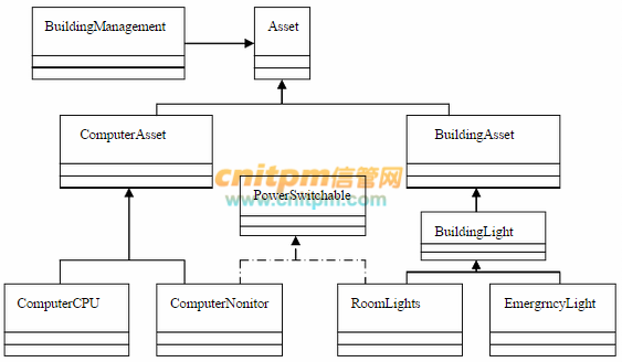 已知某公司主要有两大类耗电资产(Asset):计算机(ComputerAsset)和建筑物(BuildingAsset)。为了节约能源,通过控制各种电源,将可关闭的房灯、计算机显示器等在夜间关闭。