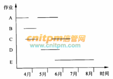 下图是某工程A~E五个作业的进度计划。按照该计划,到5月31日检查时,已完成作业数、已经开始但尚未完成的作业数以及尚未开始的作业数应分别为( )。A.1,2,2 B.1,3,1 C.2,2,1 D.3,2,0