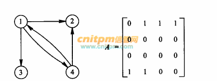 某有向图 G 及其邻接矩阵如下所示。以下关于图的邻接矩阵存储的叙述中,错误的是( )。A. 有向图的邻接矩阵可以是对称矩阵B. 第 i行的非零元素个数为顶点 i的出度C. 第 i行的非零元素个数为顶点 i的入度D. 有向图的邻接矩阵中非零元素个数为图中弧的数目