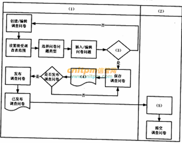 分析该在线调查系统的业务流程,填写图5-1中(1)~(5)的内容。