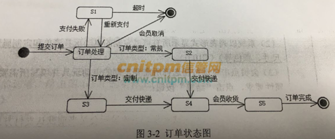 问题:3.3根据订单处理过程的描述,在图3-2中S1~S5处分别填入对应的状态名称。