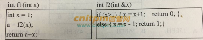 已知函数f1( )、f2( )的定义如下,调用f1时为传值调用,调用f2时为引用调用。设有函数调用t=f1(5),那么调用执行后t的值为( )。A.1B.5C.6D.7