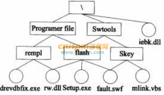 若某文件系统的目录结构如下图所示,假设用户要访问文件rw.dll, 且当前工作目录为swtools,则该文件的相对路径和绝对路径分别为 ( )。
