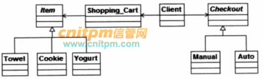 假设现在要创建一个简单的超市销售系统,顾客将毛巾、饼干、酸奶等物品(Item)加入购物车(Shopping_Cart),在收银台(Checkout)人工(Manual)或自动(Auto)地将购物车中每个物品的价格汇总到总价格后结帐。这一业务需求的类图(方法略)设计如下图所示,采用了( )模式。其中( )定义以一个Checkout对象为参数的accept操作,由子类实现此accept操作。此模式为(请作答此空),适用于( )。