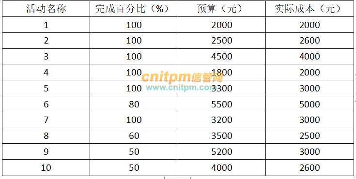 下表给出了某信息系统建设项目的所有活动截止到2022年6月1日的成本绩效数据,项目完工预算BAC为40000元。