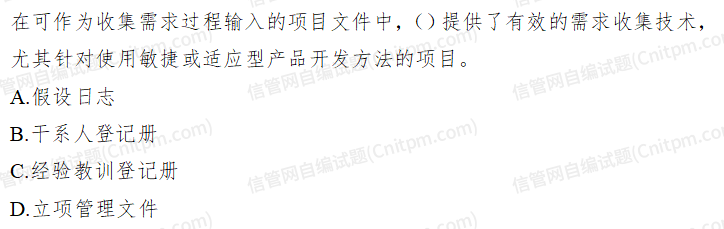 在可作为收集需求过程输入的项目文件中,()提供了有效的需求收集技术,尤其针对使用敏捷或适应型产品开发 - JRS直播