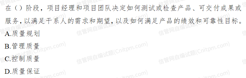 在()阶段,项目经理和项目团队决定如何测试或检查产品、可交付成果或服务,以满足干系人的需求和期望,以 - JRS直播