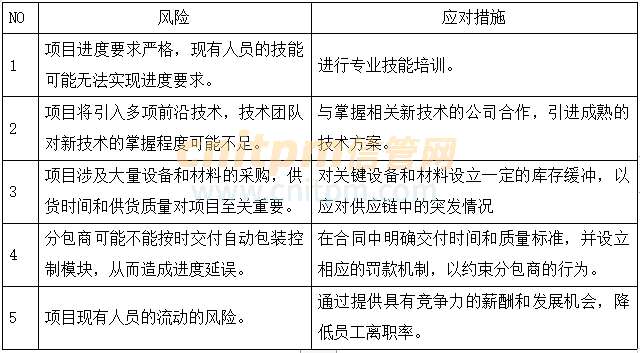 在项目初期,小张经过需求调研,初步确定了项目的主要目标、关键里程碑,以及项目管理计划。在此过程中,小张还组织团队识别了项目中可能出现的风险,整理出项目主要风险清单以及初步应多措施: