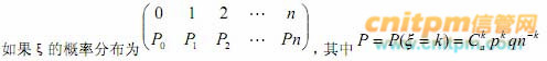 (k = 0,1,… n,0 < p < 1,q = 1 - p ),则称ξ服从(1)分布,其数学期望是(2)。 (1)A、二项 B、几何 C、泊松(Poisson) D、0-1 (2)A、p B、pq C、np D、npq