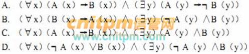 设A(x):x是金子,B(x):x是闪光的,则命题“没有不闪光的金子,但闪光的不一定是金子”形式化为( )。A. AB. BC. CD. D
