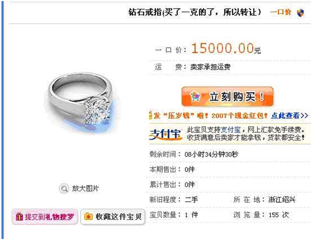 某电子商务网站交易界面如下图所示。该电子商务交易方式为 (1) 。交易应对买卖双方都较公平,如借助图中示意的所谓“支付宝”,恰当的交易流程是(2) 。(1)A、B2B B、B2C C、C2C D、C2B(2)A、卖家发货给买家,买家付款到支付宝,支付宝再付款给卖家 B、买家用支付宝付款给卖家,卖家发货 C、买家付款到支付宝,卖家发货给买家,支付宝付款给卖家 D、卖家发货,买家用支付宝付款给卖家